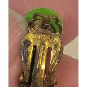 Japan Vintage Green Clip Earrings Married Complementary Mix Match Funky Pair