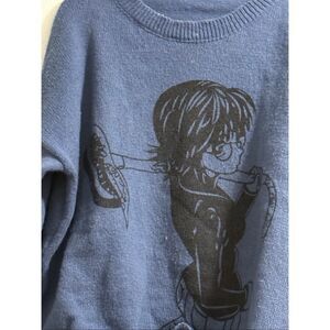 Japanese Anime Cartoon Print Loose O-Neck Pullover XL Vintage Casual Long-