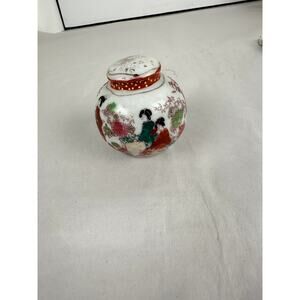 Japanese Antique China Salt and Pepper Shakers Round 1921-1941.. Both show sign of wear due to aging and use. New Corks. They are about 3" tall and show the typical Geisha, floral and structure pattern. Refer to photos for details.