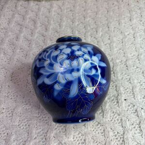 Japan Brilliant Hand Painted Blue Flowers Vase famous Fukagawa Signed