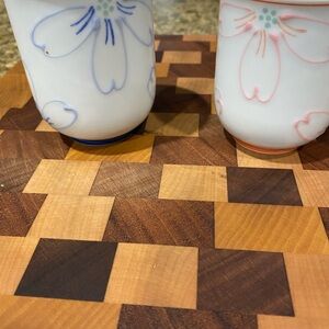 Japanese Arita Yunomi Cylindrical Handless Floral Blue /Pink Ceramic Tea Cup Set Elegant Sophisticated