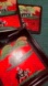 Japanese Lacquered Hand Painted Coasters W/ Hand Painted Container. Each coaster is hand painted and the red background has a shimmery metallic effect.