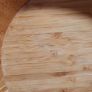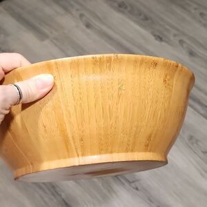 Japanese Artist Signed Bamboo LG Wooden Bowl, no major flaws but see pics for very light imperfection marks. No cracking. Great for so many serving dishes, fruit or decor.