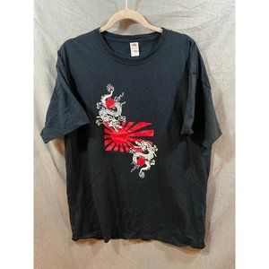 Japanese Battling Dragons Shirt Adult Extra Large Black Pullover Tee Mens