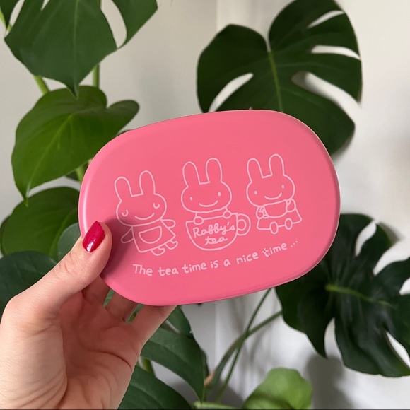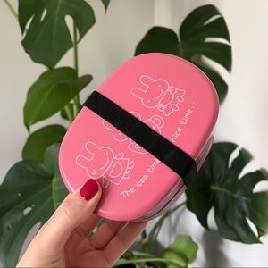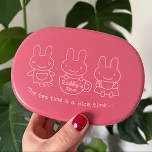 Adorable ‘Rabby’s Tea’ bento box featuring two compartments (one sealed) and an elastic band to keep it all together. Great for meals or snacks on the go!