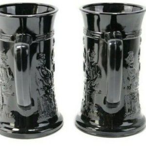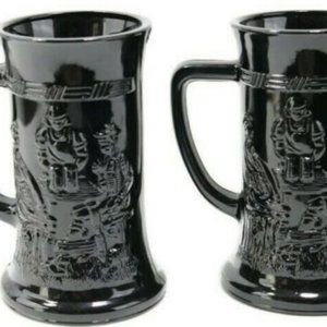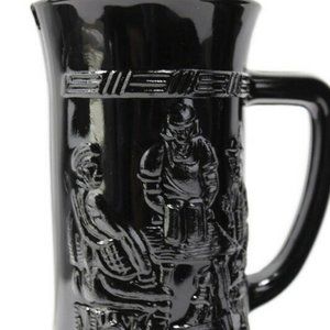 Japanese Black Ceramic Tall Mug Soldier Print Decorative Collectible