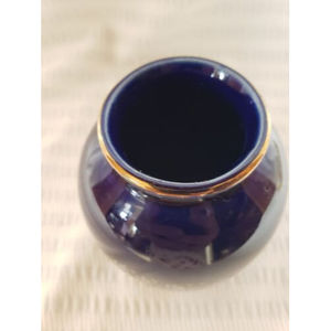 Japanese Blue Cobalt and Gold Peacock Vase Vintage Ceramic 6 inch - Hand Painted.