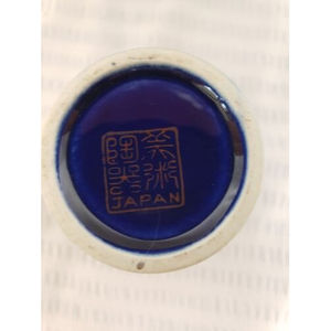 Japanese Blue Cobalt and Gold Peacock Vase Vintage Ceramic 6 inch - Hand Painted