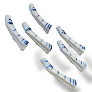 Japanese Blue & White Porcelain Ceramic Chopstick Rests Set of 6 Bamboo Pattern