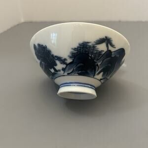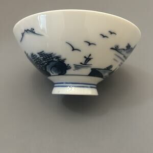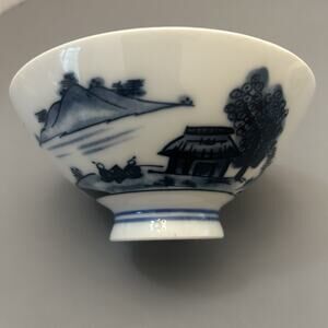 Japanese Blue and White Porcelain Rice Soup Bowl Set of 2 Vintage #1
