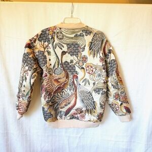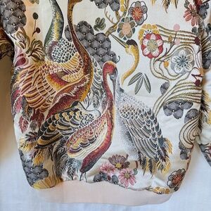 Size 2XL. Smoke Free Home. Excellent Condition. Awesome Cranes, and Flowers all over - Made by Original Fashion. This bomber is the archetypal outer garment for a wardrobe upgrade. Embroidered with the influence of Japanese culture, the trendy jacket is complete with a ribbed collar, cuffs, and bottom, and finished off with a side pocket and a separating zipper closure.