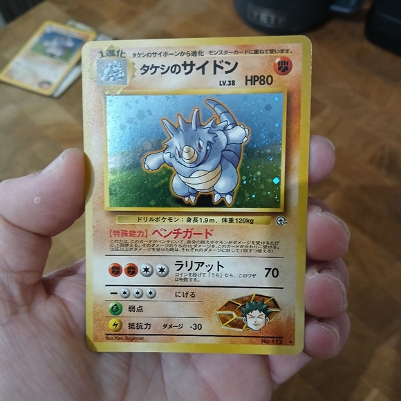 Japanese version Brock's Rhydon from the Gym Heroes set #2/132, card is in mint condition. Holographic and rare, card is set in a hard plastic sleeve.