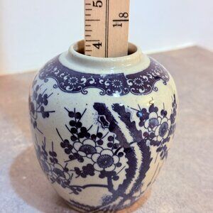 Japanese Ceramic Ginger Jar Pottery Lid VTG Blue Floral Cherry Blossom Storage Chinese Artistry