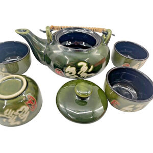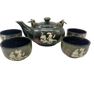 Japanese Ceremony Tea Set Vintage 5 Piece Japanese Kung Fu Tea Jade Green
