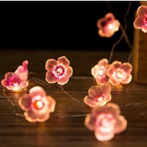 Super adorable pink Japanese cherry blossom led light string! Provides elegant & warm ambience. Perfect as birthday or summer pool party decor & for bedrooms!