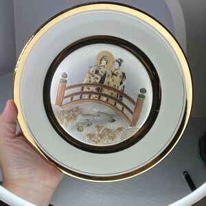 Japanese Chokin art decorative curled edge dish. There is some slight marks on gold trim. Hard to see but tried close up pics.