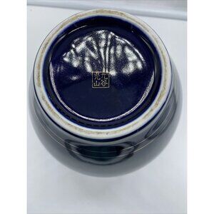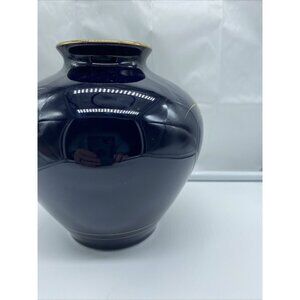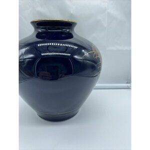 Japanese Cobalt Blue With Gold Floral Pattern Design Ceramic Vase 7" Tall