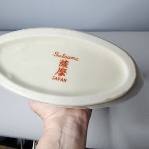 Japanese Cream Peacock & Floral Flat Oval Vase Made in Japan Satsuma
