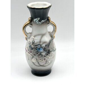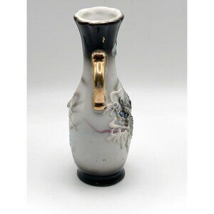Japanese Dragon Hand Painted Moriage Satsuma Miniature Vase Urn 4.25”