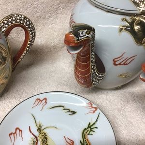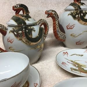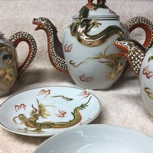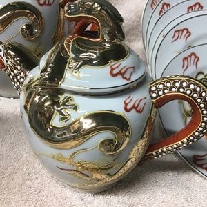 Japanese Dragonware Moriage Kutani Gold Tea Set 20 pcs Lithophane Cups.