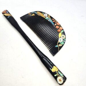 Japanese Floral Lacquer Hair Comb & Stick Set In Box Matsuzakaya Vintage JE311