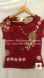 • Deep red w/ white, mustard, tourmaline, black print
