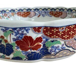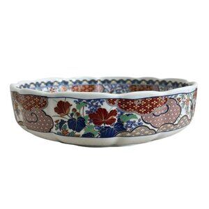 This Utsuwa Japanese Fluted Bowl, adorned with a delicate floral pattern, is a display of craftsmanship and tradition. Made in Japan, the 9" porcelain bowl has a multicolored design that adds a touch of elegance to any setting.