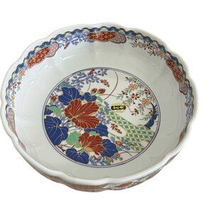 Japanese Fluted Bowl Utsuwa Floral Pattern Size 9" Width Made in Japan