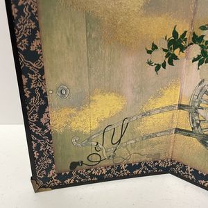 Japanese Folding Screen Flower Cart Painting 2-panel With Gold Fabric Trim 10x8. Very Nice pre-owned condition.