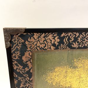 Japanese Folding Screen Flower Cart Painting 2-panel With Gold Fabric Trim 10x8