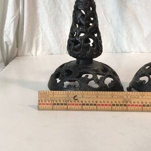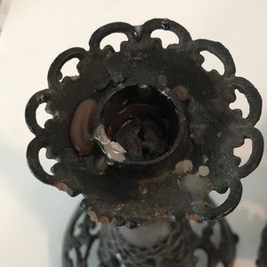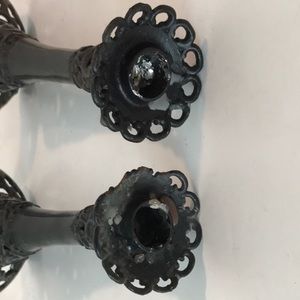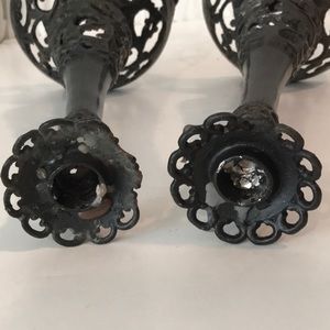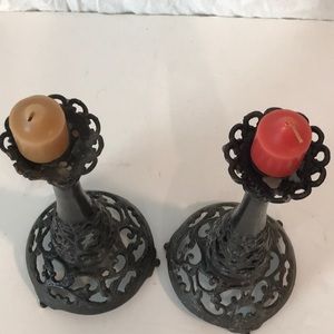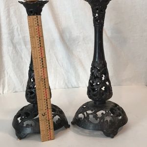 Set/2 Antique Forged Iron Filigree Candlesticks Candle Holders Gothic Iron Filigree