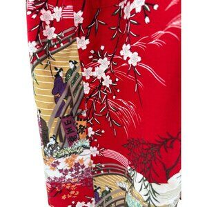 Japanese Geisha Kimono Robe Red Floral Geisha Print Belt missing