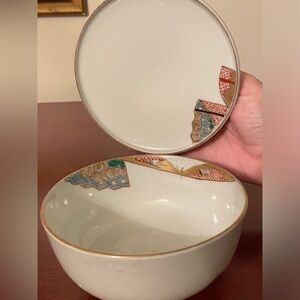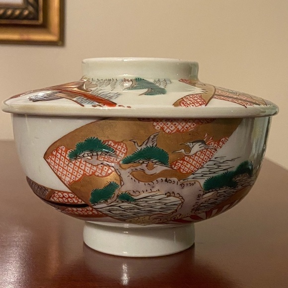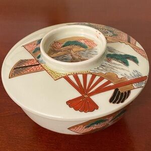 Japanese Hand Painted Imari Rice Bowl Landscape Decoration Signed with Lid