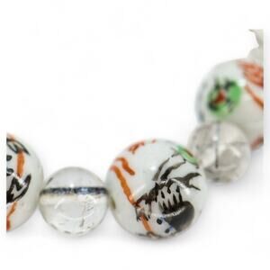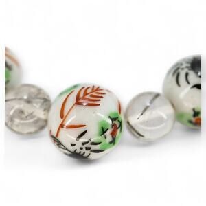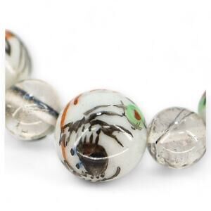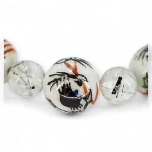 Japanese Hand Painted Porcelain Crab Motif & Tourmalinated Quartz Bead Bracelet