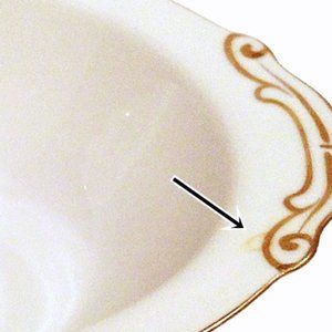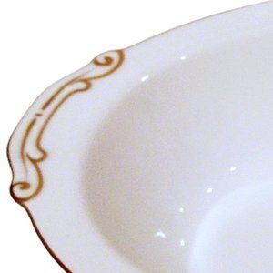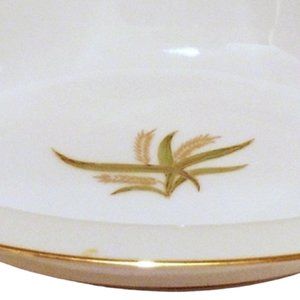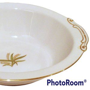 Listed for Sale is a Mid Century Fukagama Arita Hand Painted Serving/Vegetable Bowl from Japan in Golden Wheat pattern. There are two small ("age spots" - please see arrows) on the rim but the gold is in excellent condition with a rich and brilliant sheen. The Bowl was produced in the Arita Region of Japan in a Porcelain factory by Fukagama, founded in 1894.