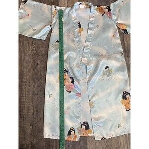 Japanese Ichiban Kimono Robe Women's Size Medium Light Blue. In good, pre-owned condition. Garment priced to reflect very light stain on right sleeve - not noticeable when garment is worn - see last picture of listing for details. Please review all pictures to verify the condition of the item. Actual color of the item may vary slightly from pictures. Comes from a clean, non-smoking home. Item is laundered prior to shipping. Because the item is pre-owned, it may not fit or measure the same as a new item - please compare the approximate measurements in the pictures to a garment that fits you to ensure desired fit. Note - Approximate measurements are taken when the item is laid flat. Please ask any questions prior to purchase. Reasonable offers always welcome! When possible, purchases from my shop are shipped in recycled packaging.