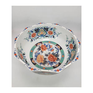 Japanese Imari Octagon Porcelain Bowl Floral & Foliate Pattern 9"