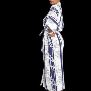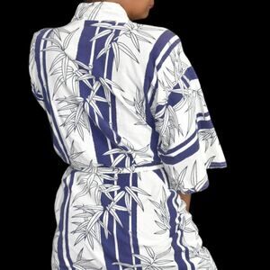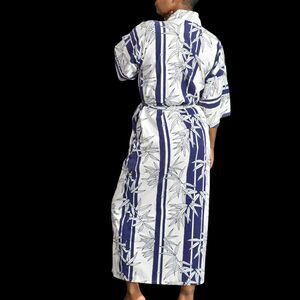 Japanese Kimono Robe Blue Vintage Bamboo Stripe Print Epitome Wrap Cotton Yukata