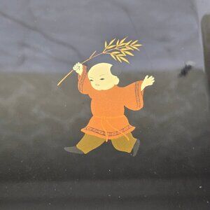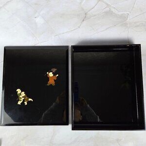 Japanese Lacquered Ryoshibako (Document) Box Children Playing Black Vintage