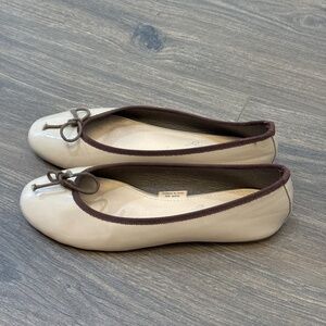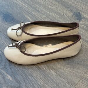 Japanese Leather Bow Ballerinas Woman Bow Knot Loafer Shoes Apricot Size US 6