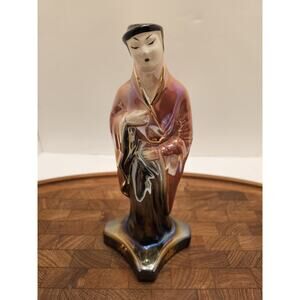 Japanese Lusterware Iridescent Pink and Black Geisha in Kimono Figurine Statue. Not sure if this is a man or a woman. It could go either way. But the iridescent glaze on this is absolutely stunning when the light hits it. From an estate of a well-traveled person in St petersburg, florida. Please see photos for details and measurements. Ask me any questions. I want you to love your purchase.