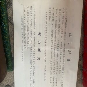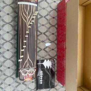 Enhance your home with this elegant brown string instrument decor. Its intricate design adds a touch of sophistication to any space. This is a used like new kept in EXCELLENT condition vintage Japanese mini koto stringed instrument with included tatami mat stand, a white pick to play and mini instruction book in the Japanese language. Asking price is $200. Will accept negotiated offers.