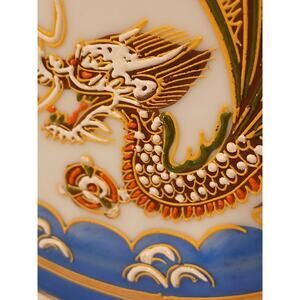 1950s Vintage Antique Japanese Moriage Hand Painted Dragonware Plate 7.5" Blue Band Dragon & Flame