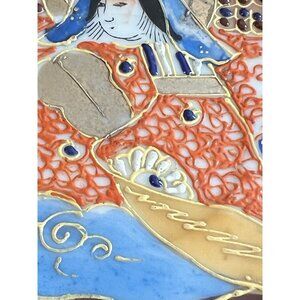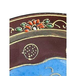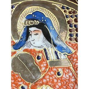 Japanese Moriage Porcelain Saucer Chikaramachi Figurel Gold Trim Vintage