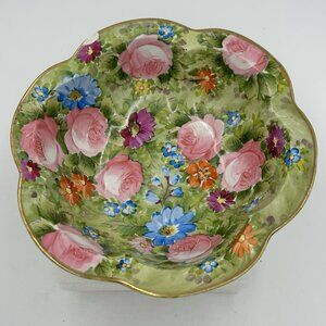 Japanese Nippon Porcelain Bowl Hand Painted Floral Decorations Gold Trim Antique