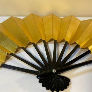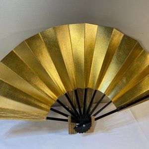 Japanese Odori Dance Hand Held SENSU Folding Fan Gold/Made in Japan