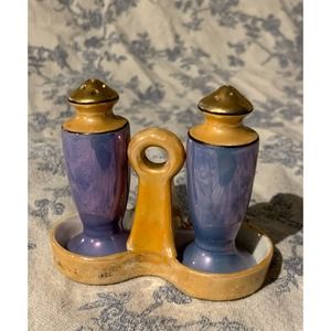 VINTAGE Handpainted Porcelain Lustreware Salt & Pepper Shakers with matching stand