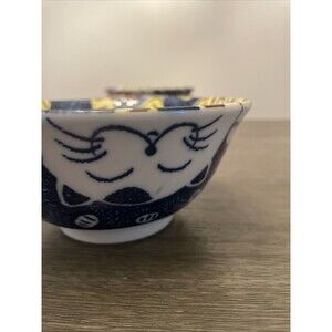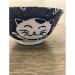 Japanese Porcelain Rice Bowl Blue Cute Kitty Cat Soup Ramen Made in Japan 6”