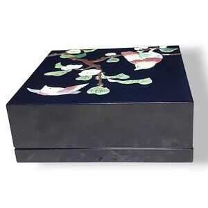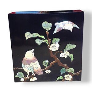 Japanese Raden Mother of Pearl Tea Flowers and Cassowaries Lacquer Jewelry Box
