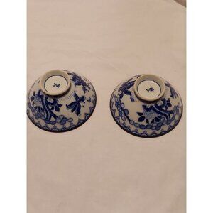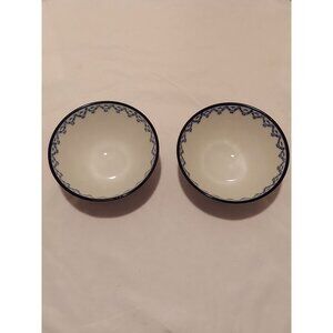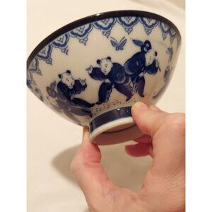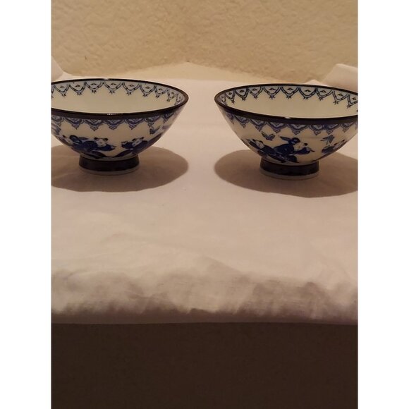 Japanese Rice Bowls Bonsai Boys Cobalt Blue On Bright White 4.75" x 2" Set Of 2